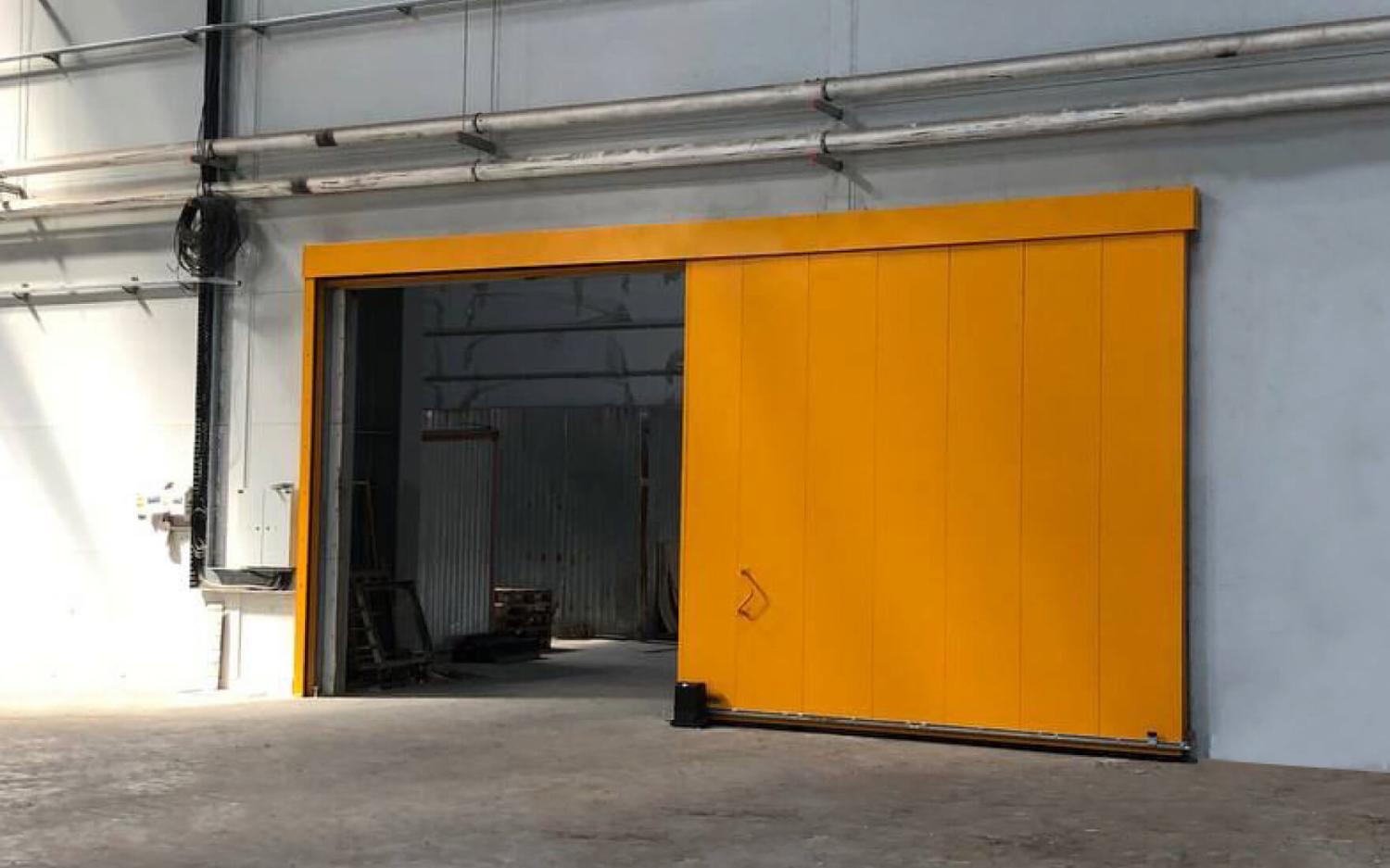 Откатные одностворчатые противопожарные ворота в паркинг