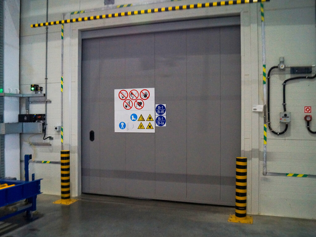 Откатные одностворчатые противопожарные ворота в промышленное помещение