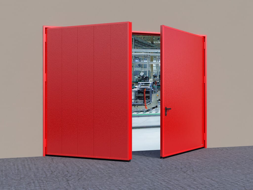 Распашные противопожарные ворота в промышленном помещении